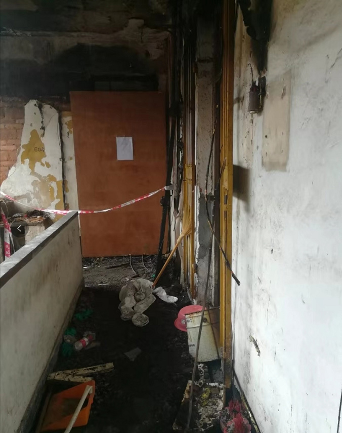遇難的是一戶6口人的家庭,夫婦兩人和4個孩子?;馂陌l(fā)生后,由于火勢過于兇猛,他們無法逃出房間,只能退到陽臺的防盜窗旁。兩個大人在防盜窗的一角,緊緊把年紀最小的孩子護在懷里,用血肉之軀擋住熊熊燃燒的烈火。